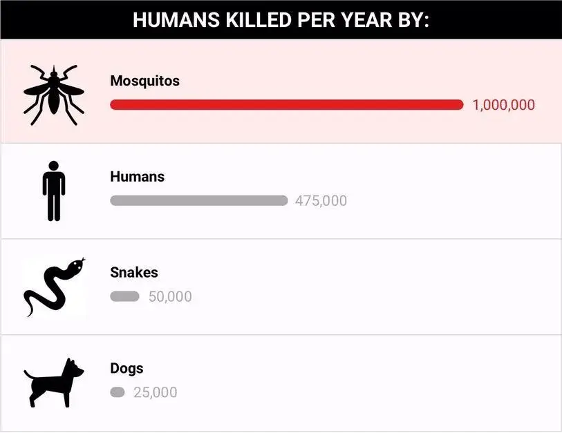 – twenty times more than snakes, which "only''kill 50,000 people a year. And, you